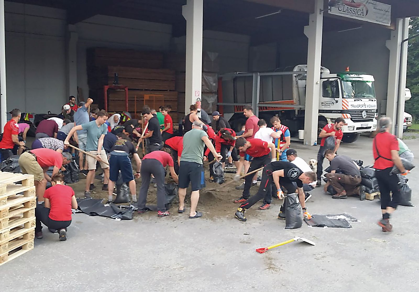 Abfüllen der Sandsäcke