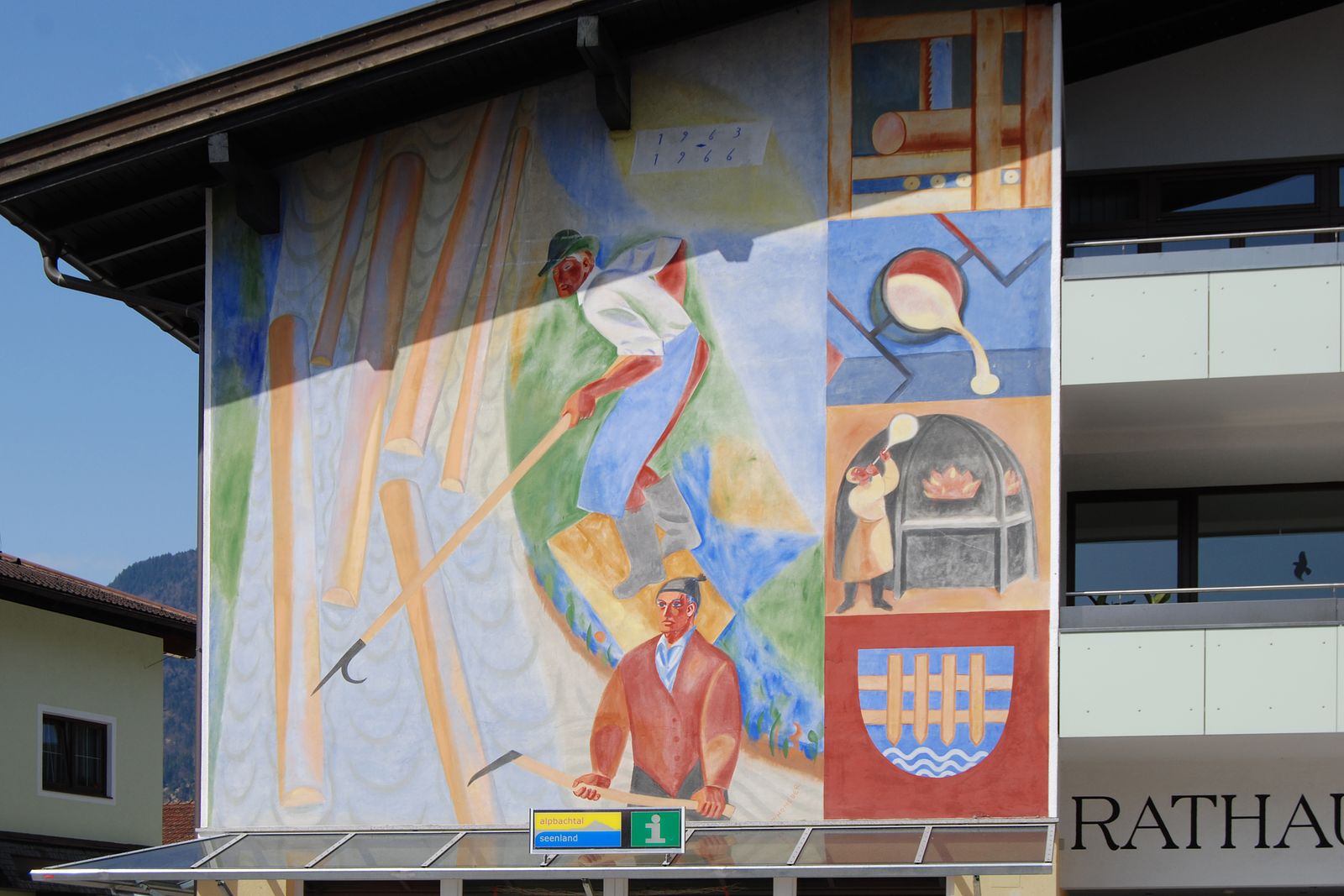 Das Wappen am Kramsacher Rathaus.