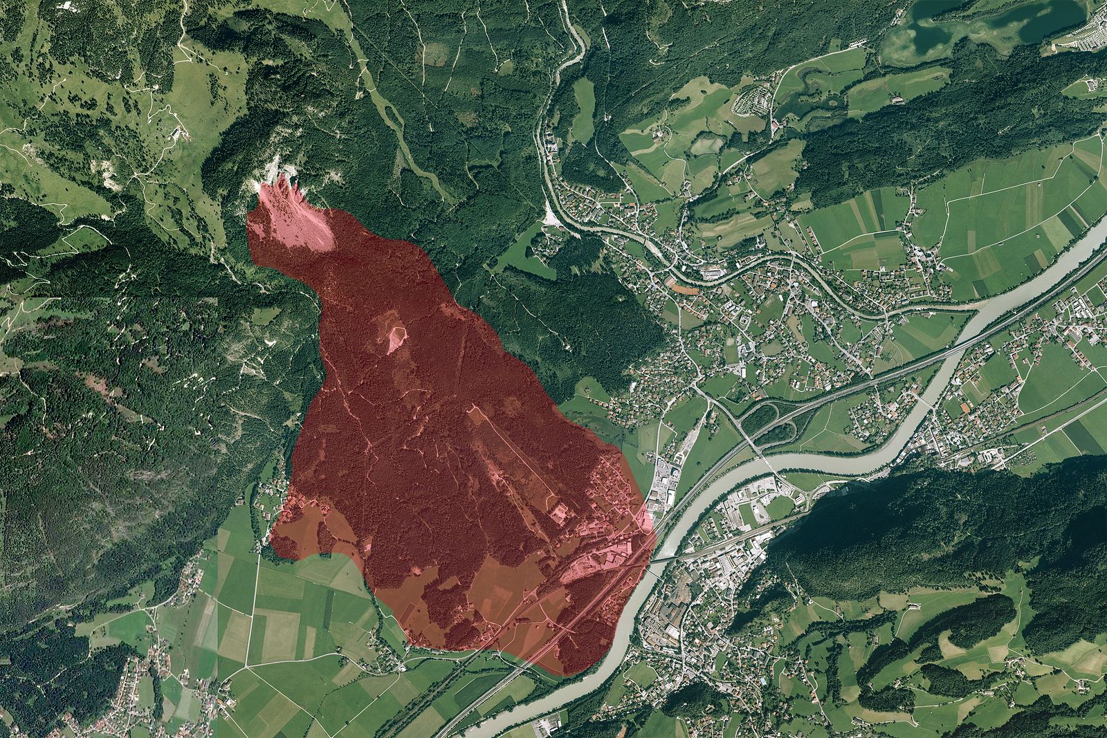 Der 1. Pletzachbergsturz (grün), der ...